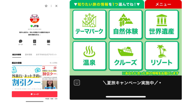 旅行業界は「顧客との多段階接点」と「予約促進」の管理が重要な課題です。例えばReluxや複数のホテル・旅館ではLINE公式アカウントを活用し、限定クーポンや季節イベント情報を発信します。チャットボットで24時間予約受付も対応し、顧客の関心性を高めています。