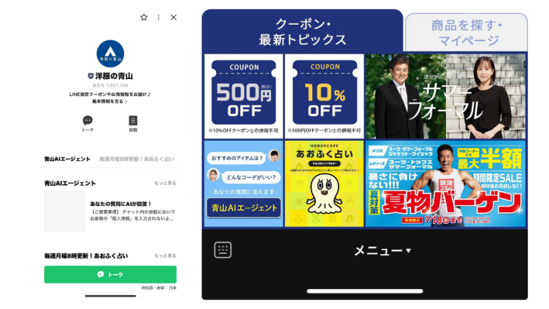 ファッション業界取りは「顧客対応」や「パーソナライズ販促」が課題です。 ユニクロはチャットボットで在庫確認と置きをLINEで放映させて効率化、洋服の青山は誕生日クーポンや週替わりセールをLINEで自動配信で効率化に成功。 結果として、業務負荷軽減と再来店率アップを達成しています。