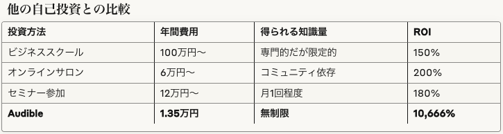 他の自己投資との比較